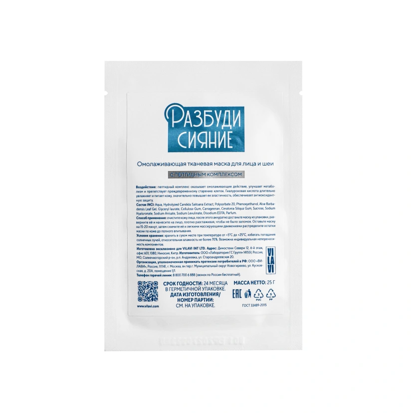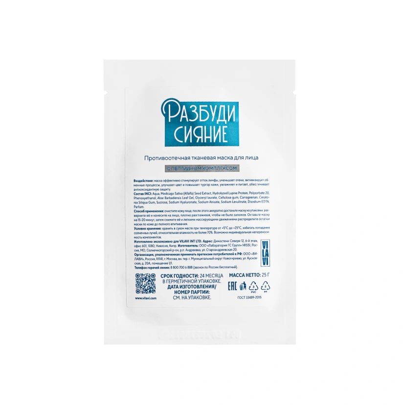 Противоотечная тканевая маска для лица с пептидным комплексом